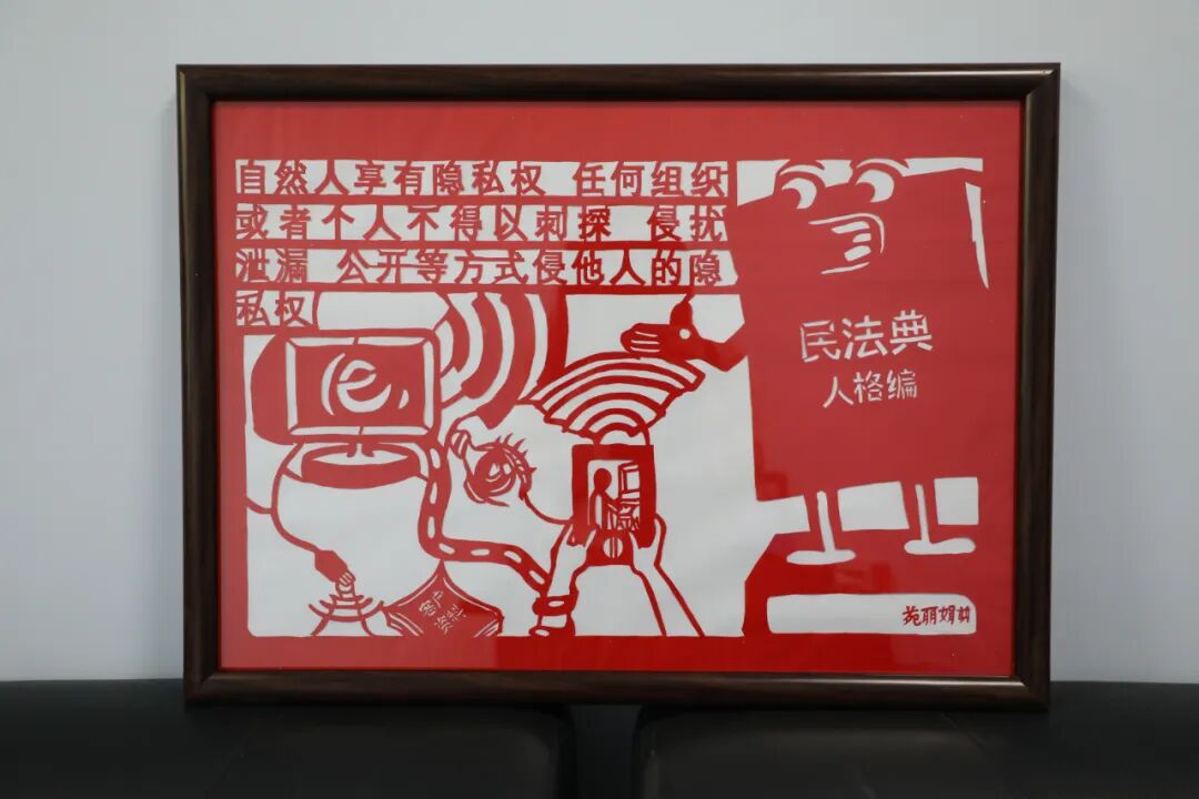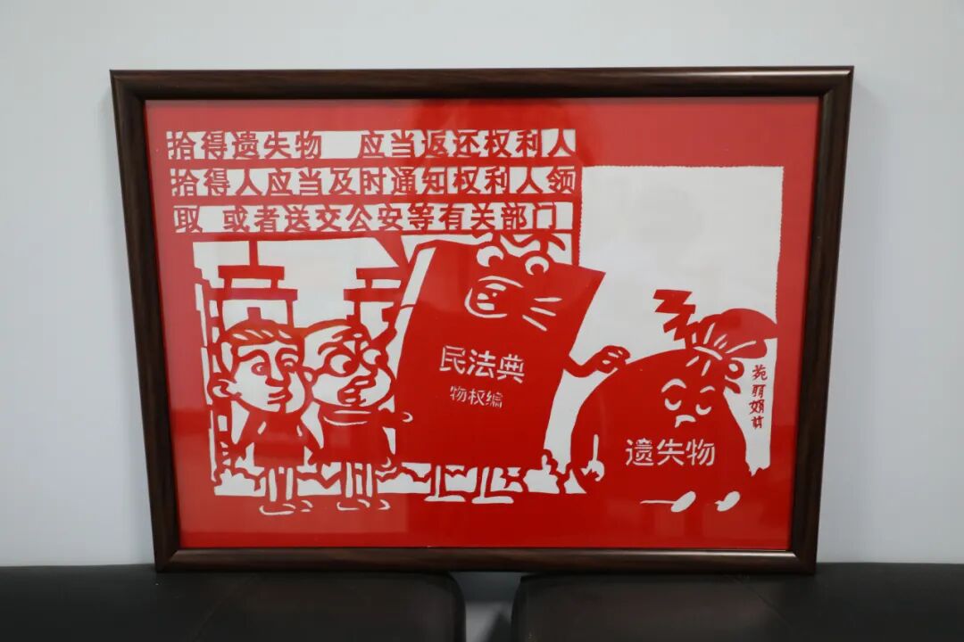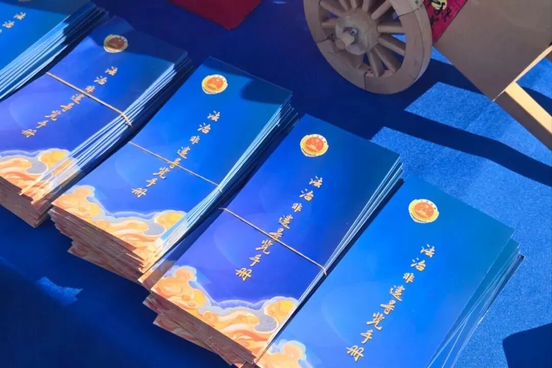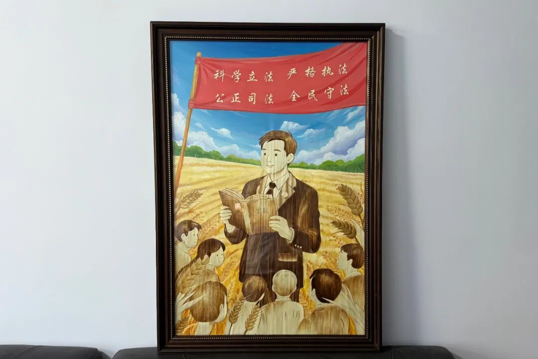 活动现场,麦秸画《麦田间的法治宣讲》、剪纸《检察故事》、喇嘛庙月饼《法韵明心》等多件非遗作品整齐陈列,成为独特的“法治展品”。每件作品放置《法治非遗导览手册》,便于群众查看创作背景及关联法律知识,如《民法典》中知识产权保护条款、《非物质文化遗产法》对传统技艺的传承规范等。