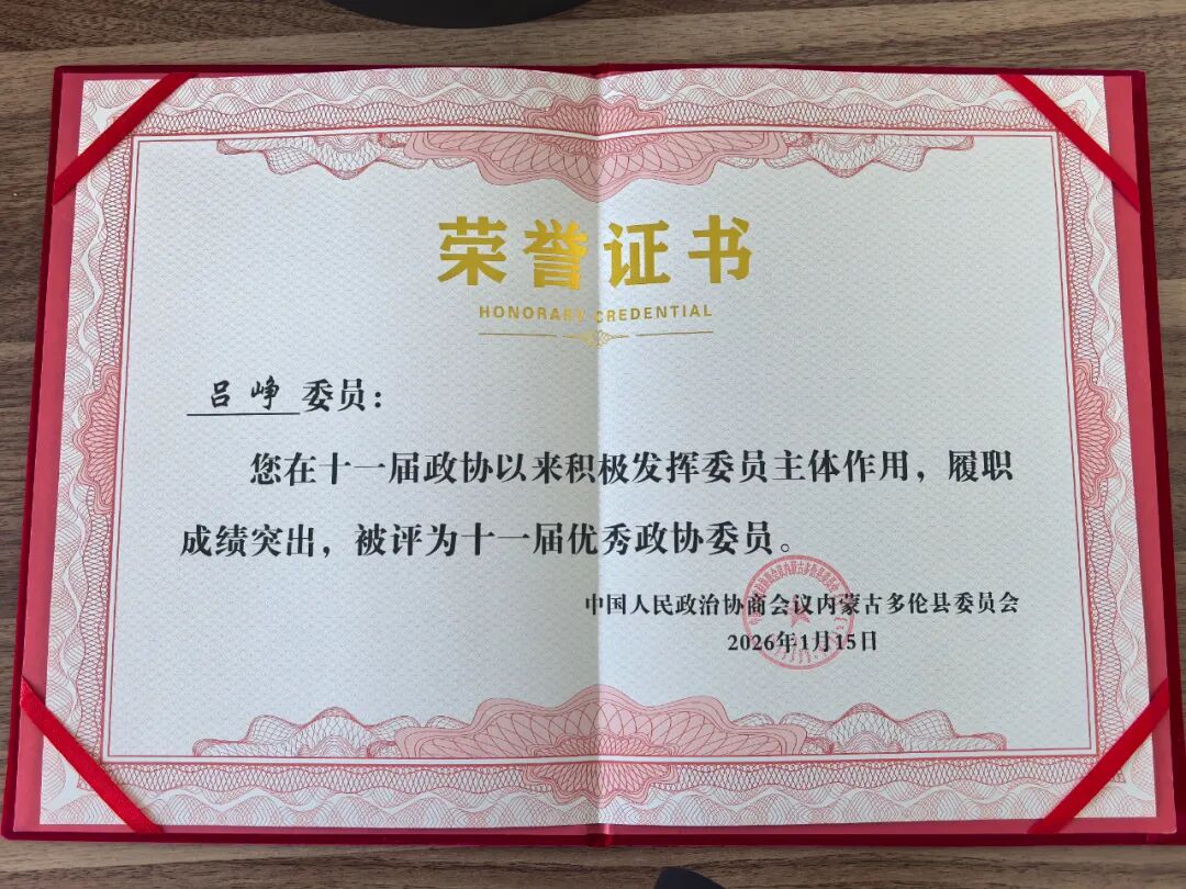 多伦县人民检察院检察委员会专职委员吕峥同志因积极发挥政协委员主体作用,履职成绩突出,被多伦县十一届政协委员会评为优秀政协委员。这一荣誉是对吕峥同志个人履职成效的高度认可,也是对检察人员以双重身份服务大局、践行“人民政协为人民”使命的有力肯定。