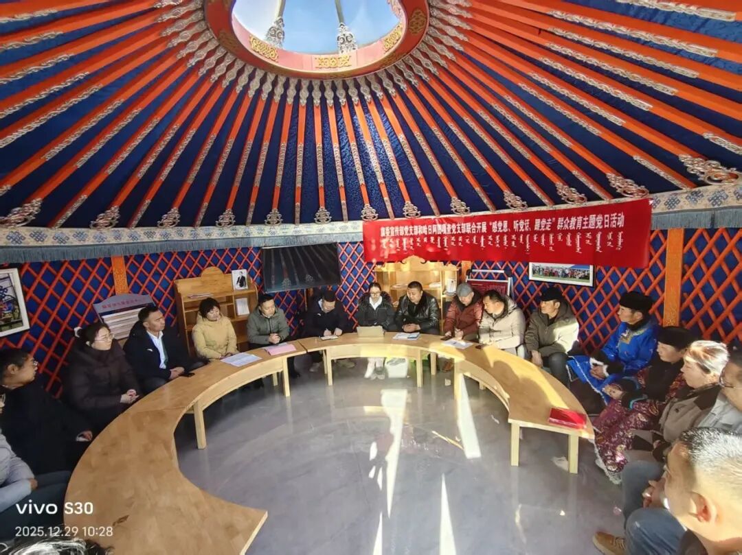 以“自治”聚力,修订完善村规民约,纳入文明过节条款,发挥网格员、牧民代表、党员中心户带头作用,及时劝导苗头性问题,形成“群众自我管理、自我教育、自我约束”的良好氛围。如今,牧区本命年简约庆祝、亲情团聚的新风尚蔚然成风,乡风文明新风在草原上蔚然成风。
