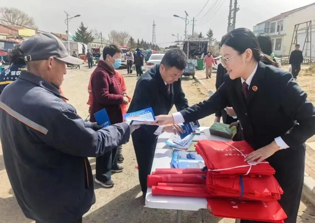 为满足基层群众法治需求,提升法治宣传覆盖面,4月16日,多伦县人民检察院检察人员走进多伦县大北沟镇集市,通过发放普法宣传单、张贴横幅、面对面答疑等形式,将法律知识宣传融入热闹的“赶集日”,让群众在“买买买”的间隙也能学学法。